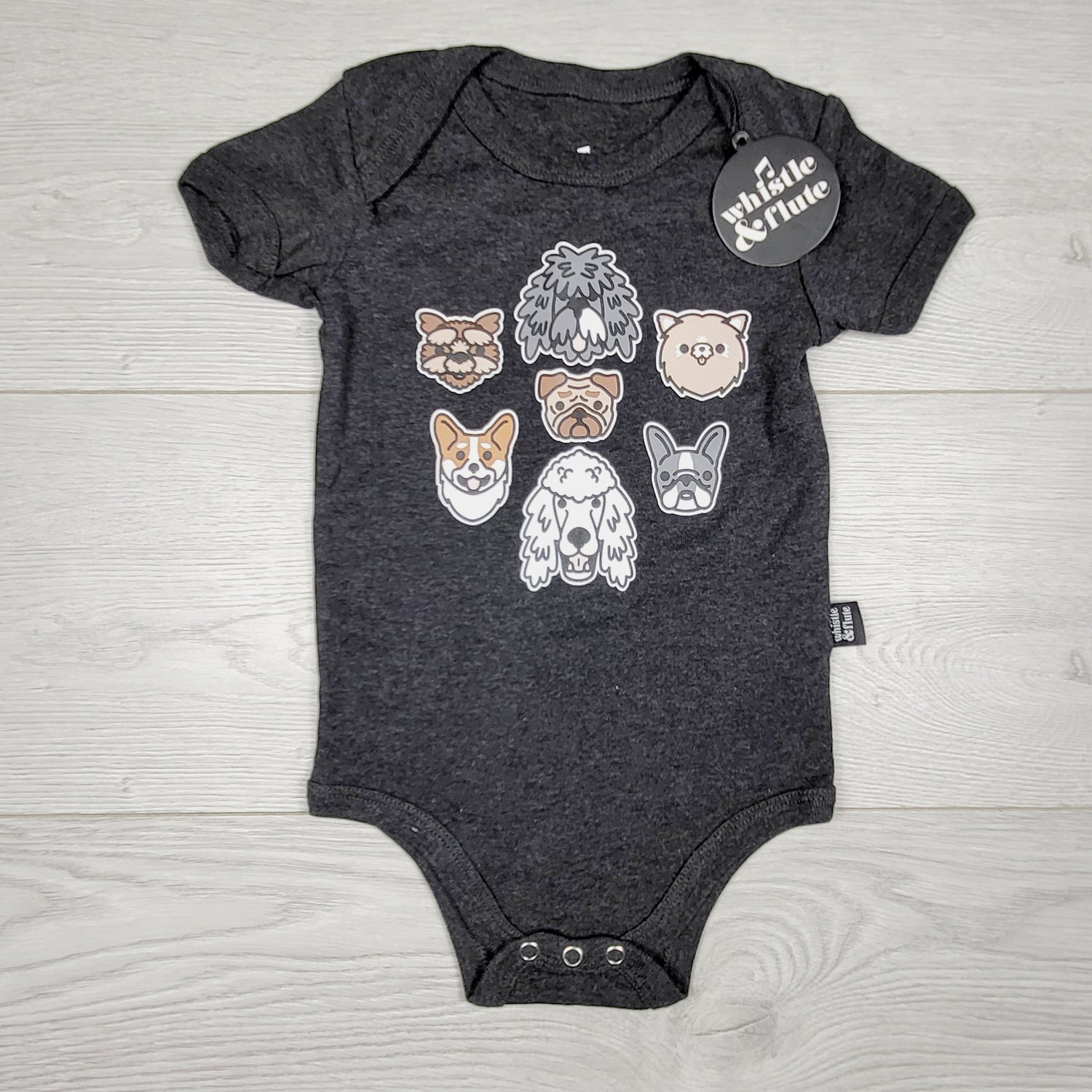 NEW - Whistle and Flute bodysuit with dogs. Size 6-12 months