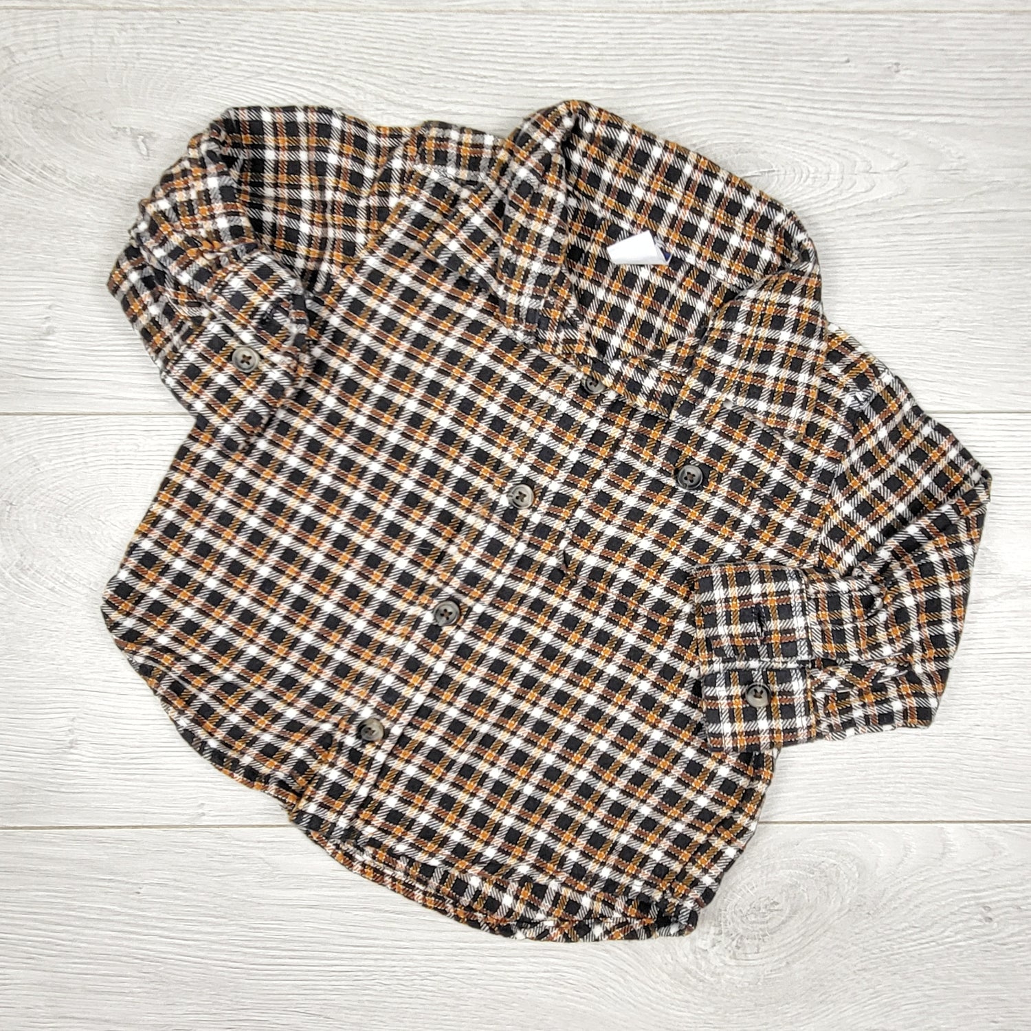 Old Navy plaid button down flannel shirt. Size 12-18 months