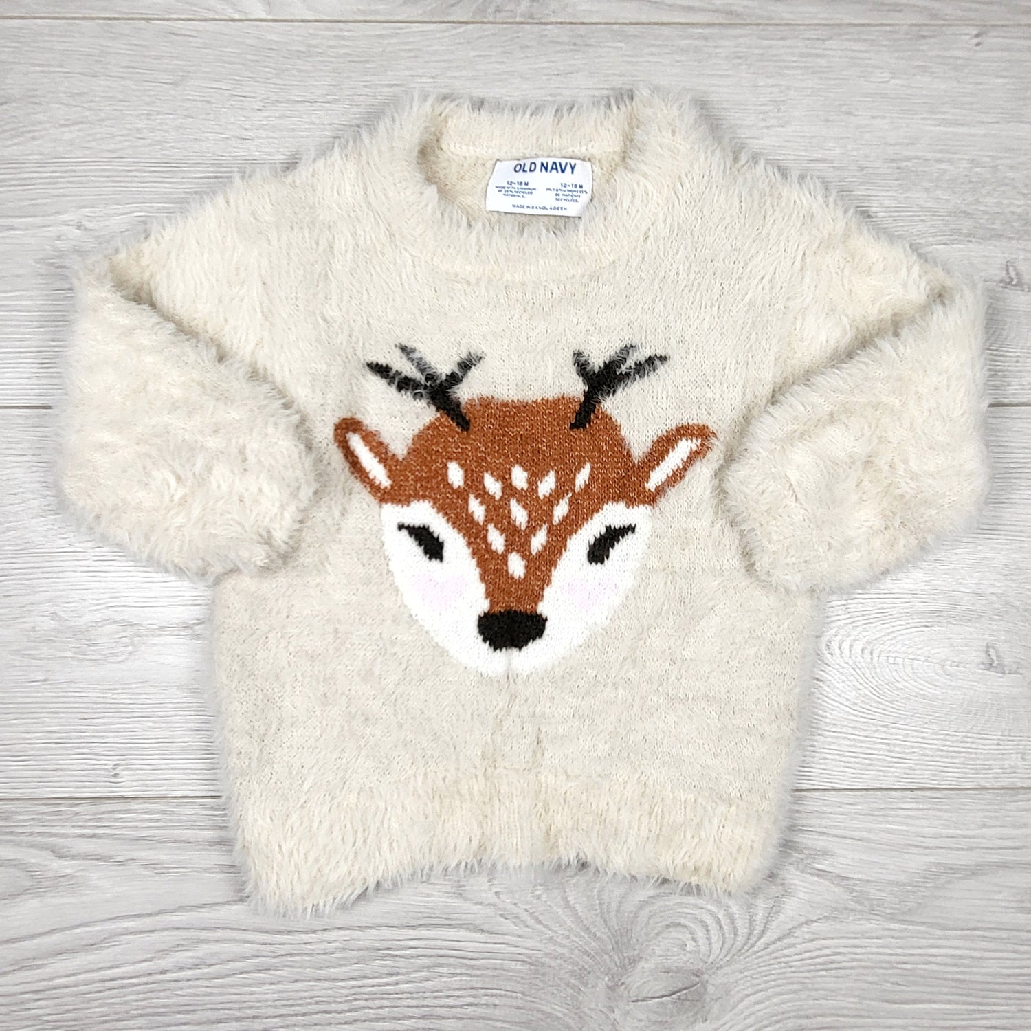 Old Navy super soft faux fur reindeer sweater. Size 12-18 months