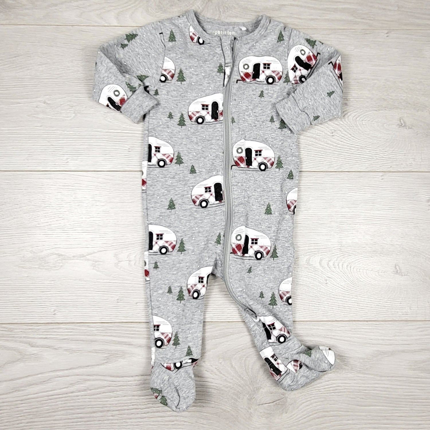 Petit Lem grey zippered cotton sleeper with holiday trailers. Size 3 months