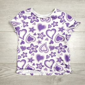 Primark white and purple t-shirt with hearts and flowers. Size 4/5T