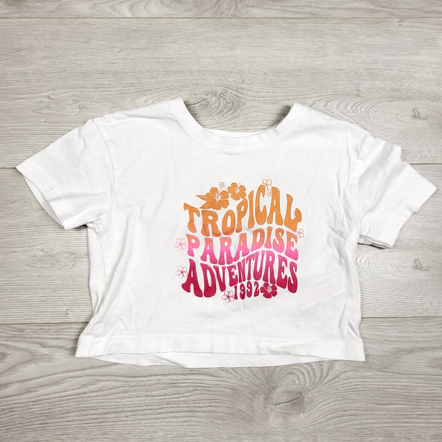 Primark white cropped "Tropical Paradise Adventures" t-shirt. Size 4/5T