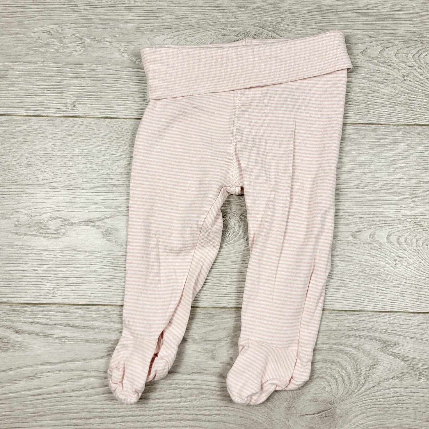 RBEN11 - H and M light pink striped footed organic cotton pants. Size 4-6 months