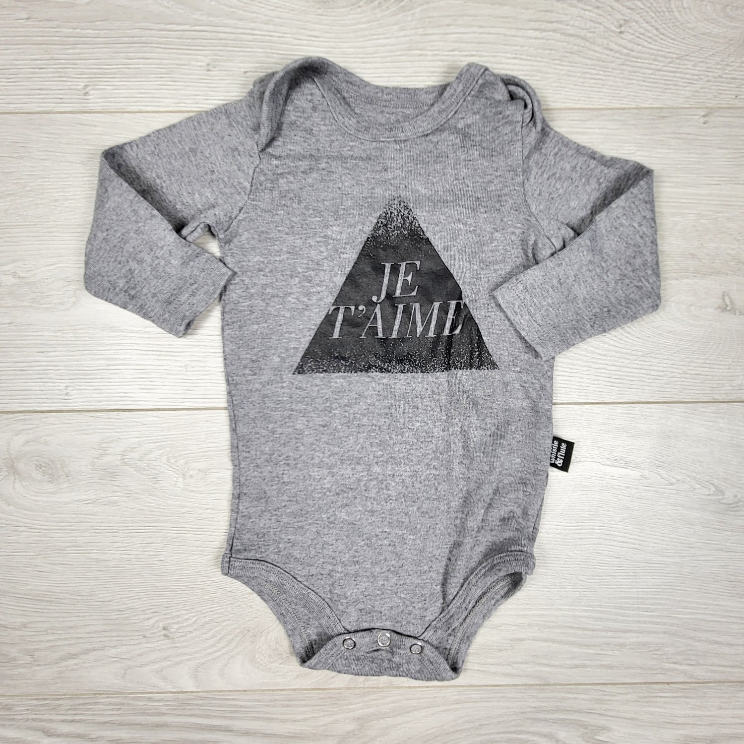 Whistle and Flute grey Je T'aime" bodysuit. Size 3-6 months